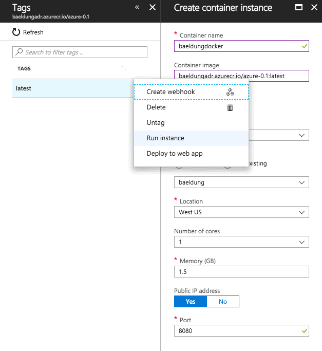 Successfully tagged baeldungadr.azurecr.io/azure-0.1:latest